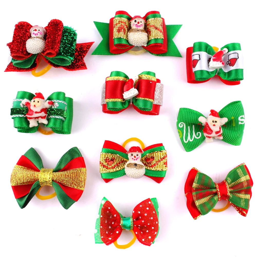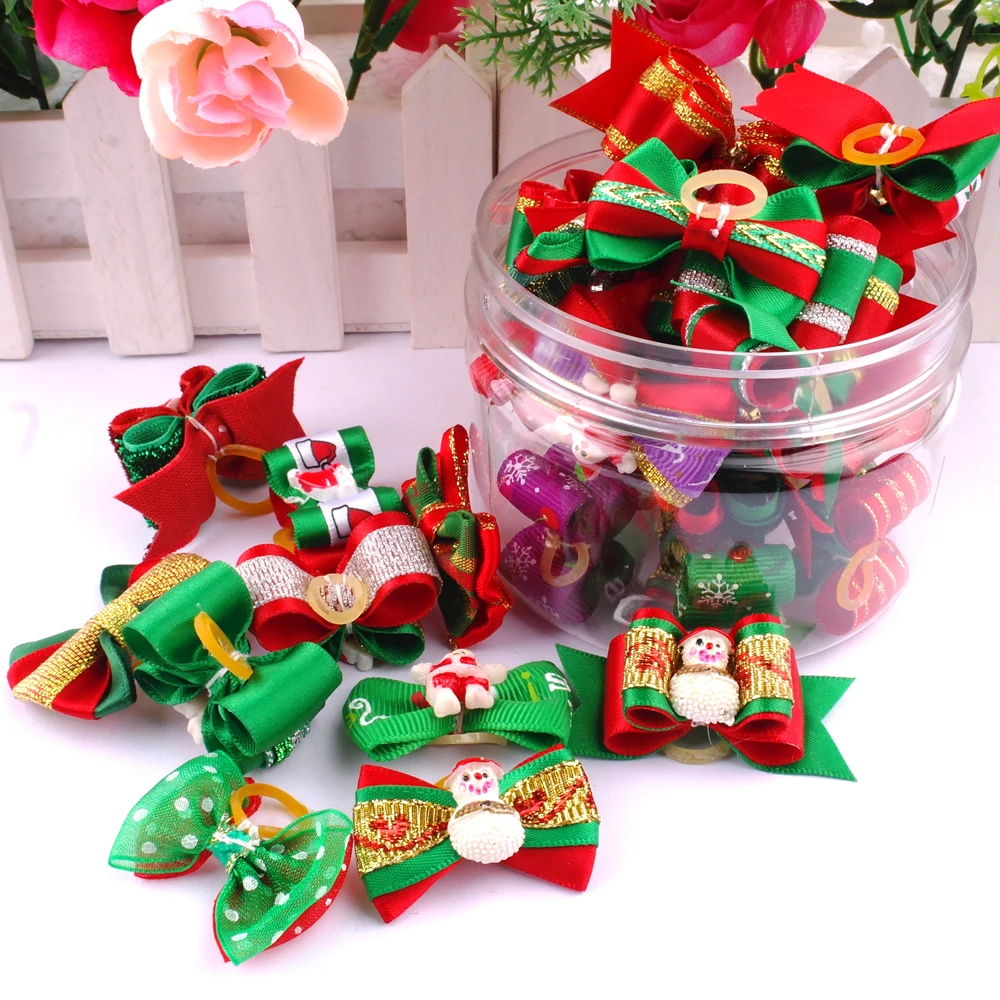 20pcs/lot Christmas Dog Hair Bows Dog Cat Kitten Hair Bows Clips Puppy Fur Grooming Products Festival Dog Accessories