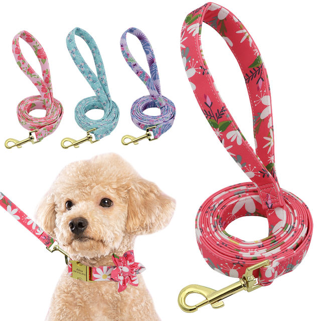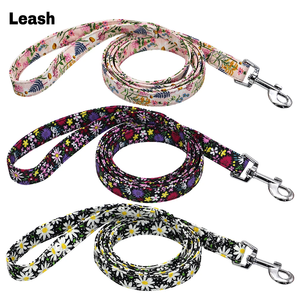 Personalized Dog Collar Leash Set Nylon Printed DogsID Collars Pet Walking Belt For Small Medium Large Dogs Flower Accessory
