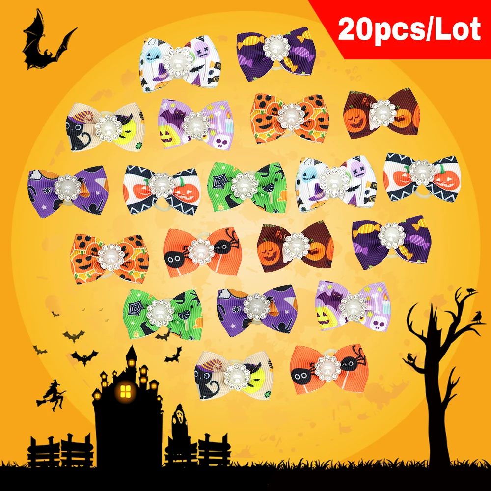 Christmas Dog Hair Bows Long Hair Dogs Cat Hair Clip Flower Bowknot Pet Cats Headwear Bow Dog Accessories 20pcs/lot Halloween