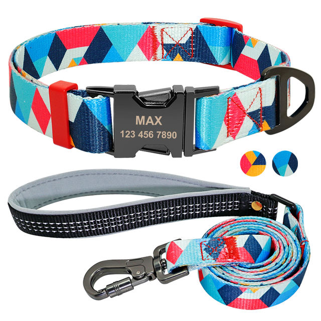 Personalized Dog Collar Leash Set Nylon Printed DogsID Collars Pet Walking Belt For Small Medium Large Dogs Flower Accessory