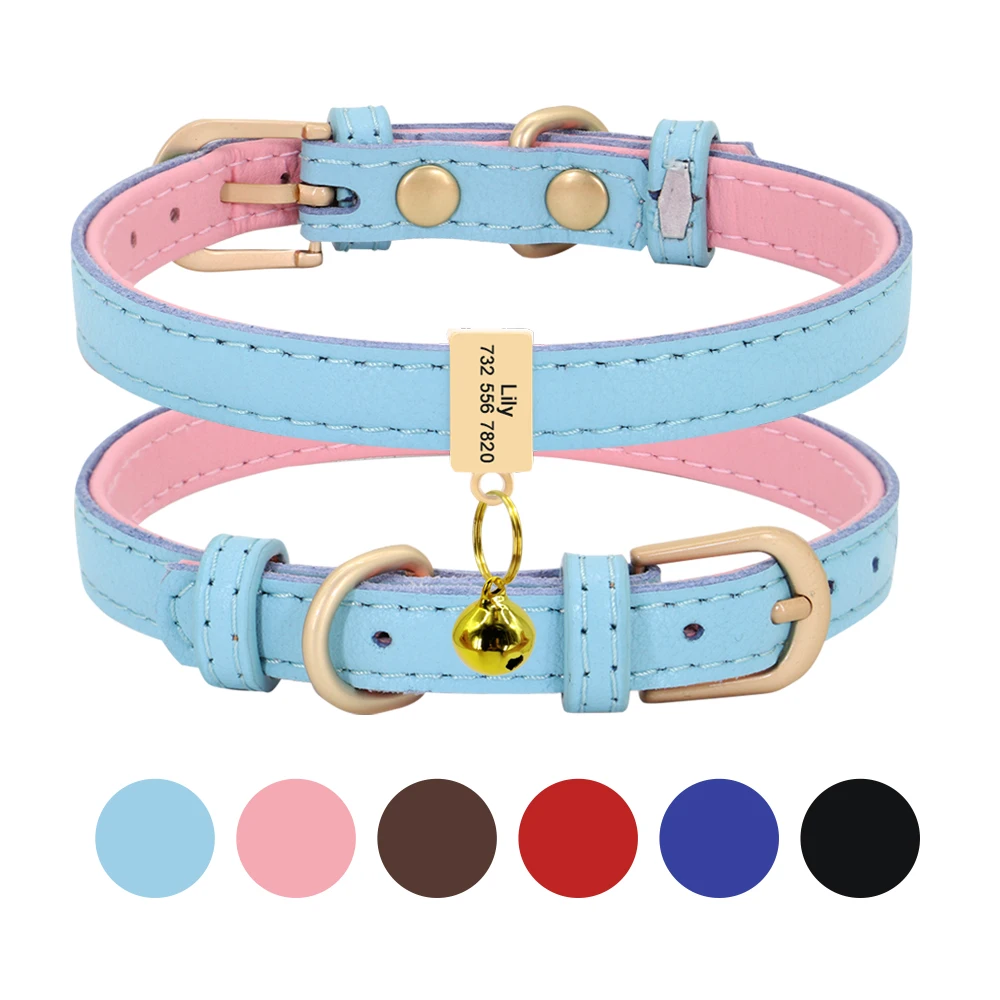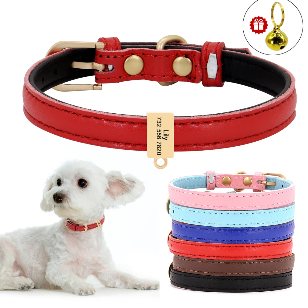 Free Engraved Dog Collar Personalized Puppy Cat ID Collars Anti-lost Tag Nameplate Soft Padded For Small Dogs Cats With Bell