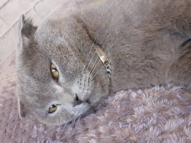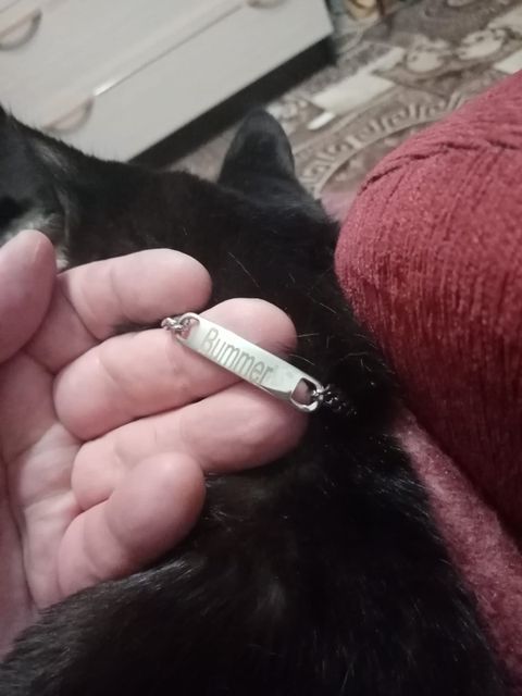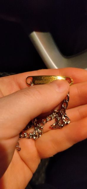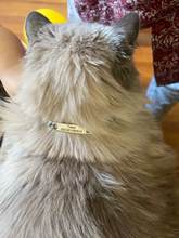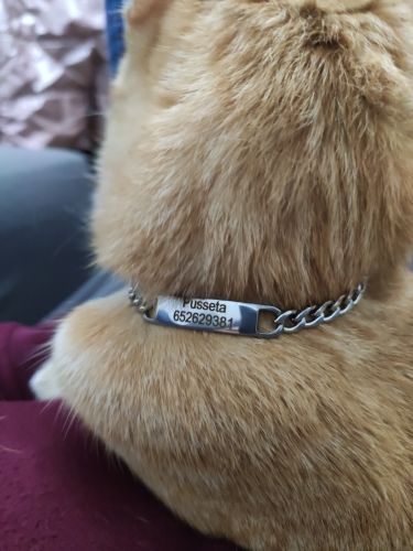Very nice necklace, perfect engraving! Metal colors... on my maine coon, it's jewelry!