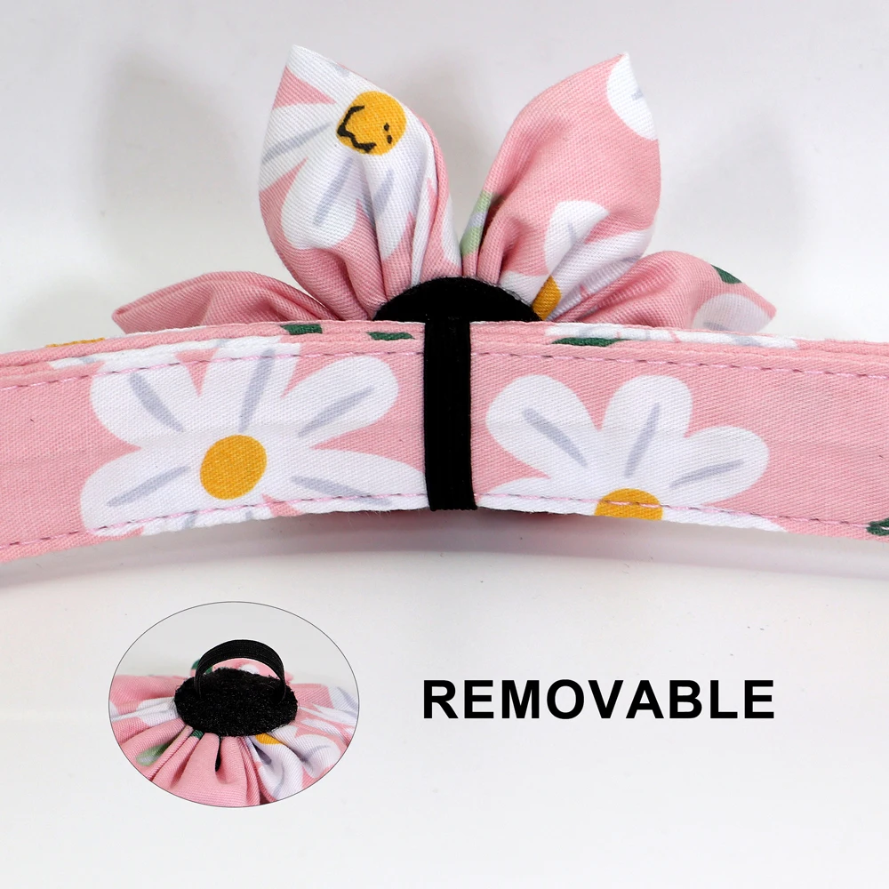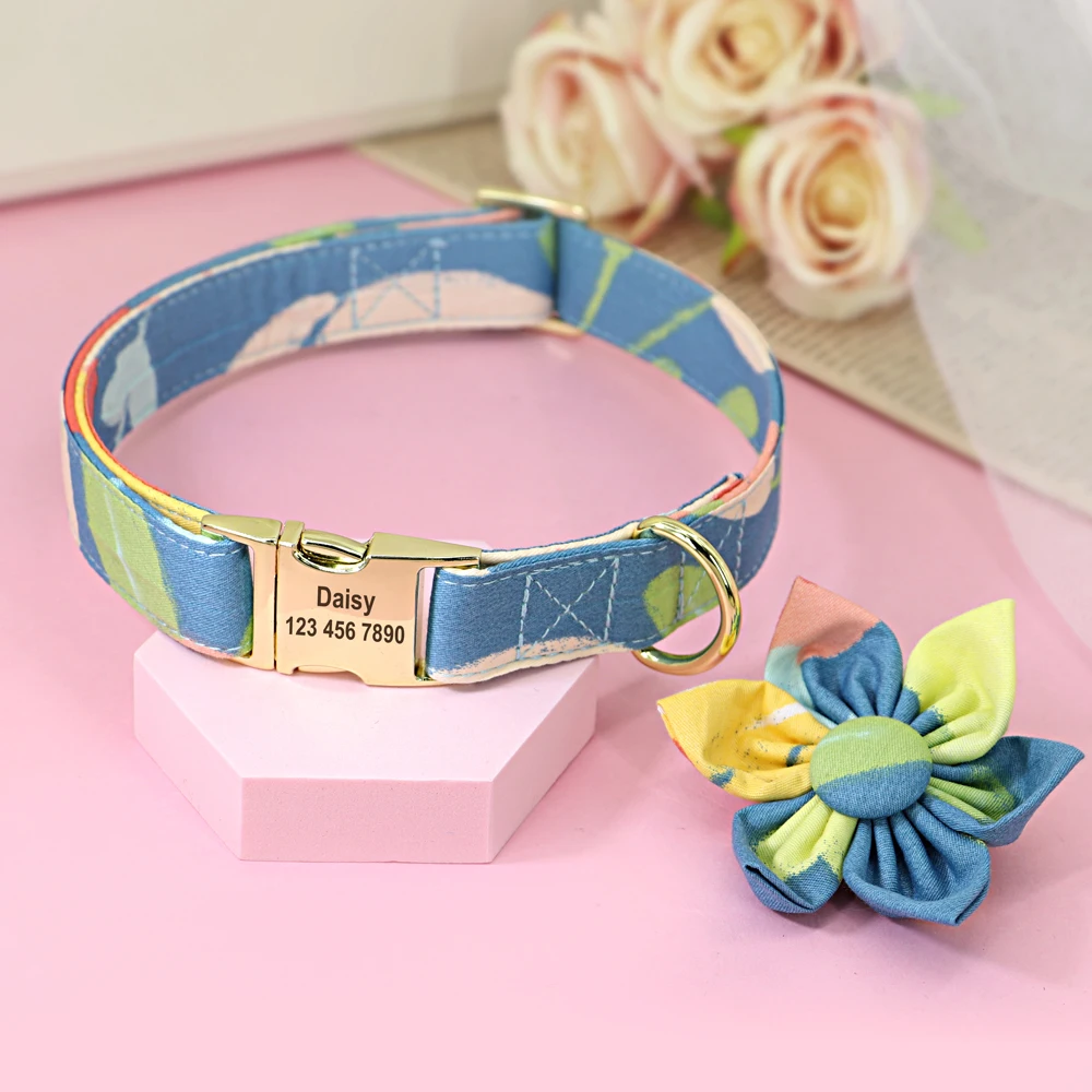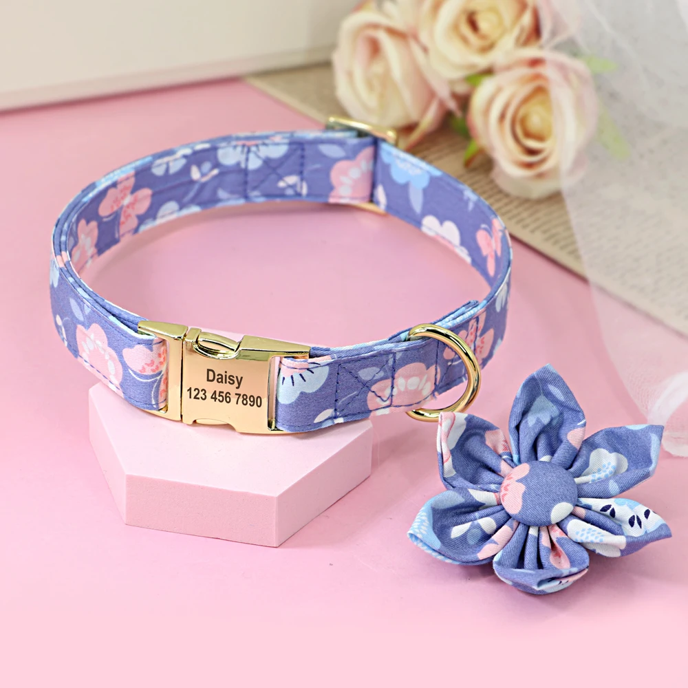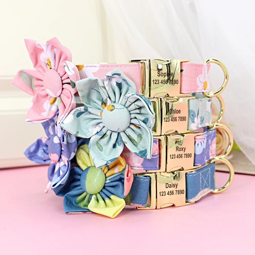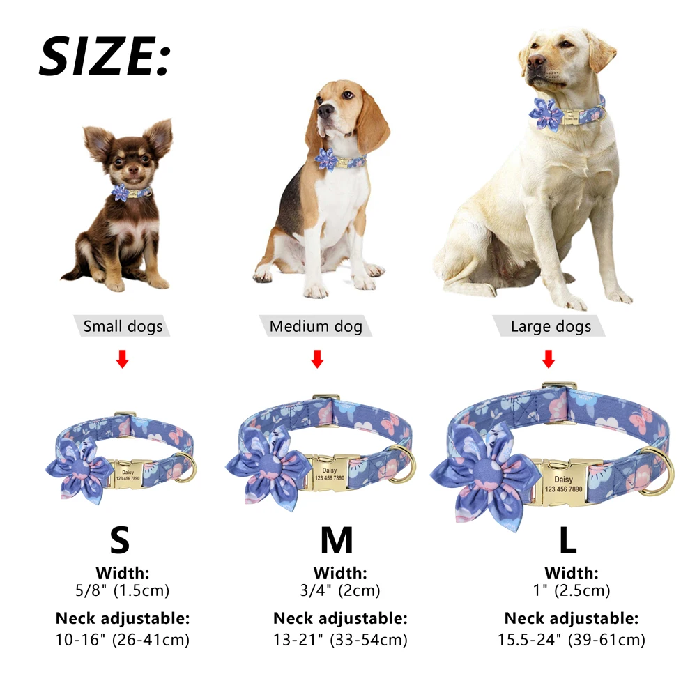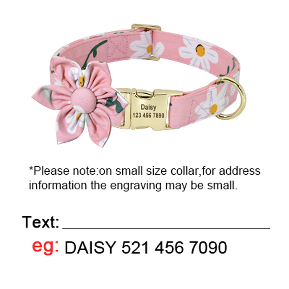 Pretty Nylon Dog ID Collar Personalized Dogs Collars Free Engraving Pet ID Tag Buckle With Flower For Small Medium Large Dogs